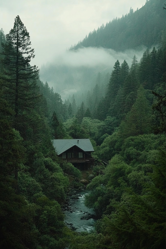 Rustic cabin near a hidden waterfall, ultimate privacy.